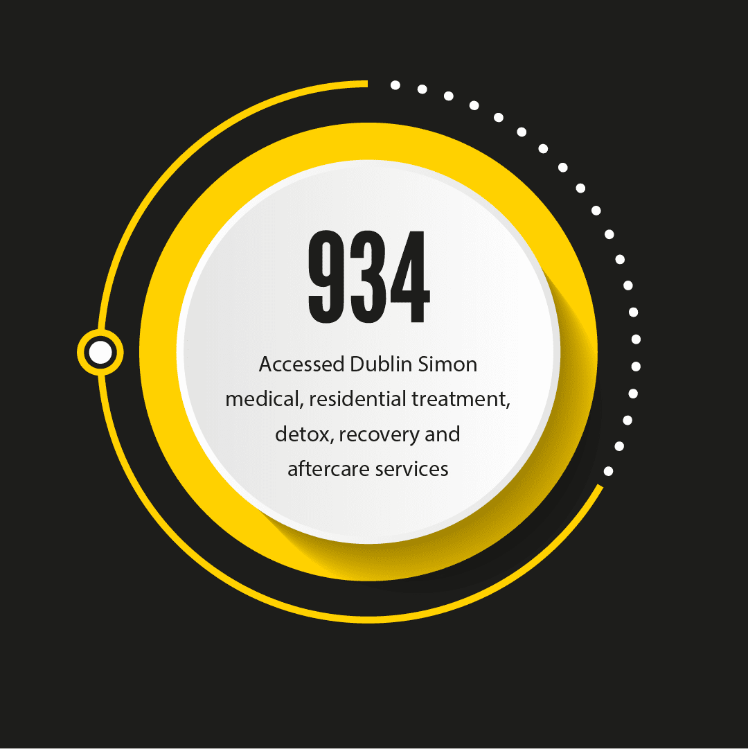 In 2022, 934 people accessed Dublin Simon’s medical, residential treatment, detox, recovery and aftercare services. Of these, our clinical services include our “Step-Up-Step-Down" service, which supports people experiencing homelessness to manage chronic illnesses, our Blood Borne Stabilisation Unit, which supports people experiencing homelessness with blood borne viruses to stabilise and adhere to medication, our alcohol and benzodiazepine detox service and our Primary Care Nursing service, which provides in-reach nursing to emergency accommodation services, meeting people’s needs where they’re at.