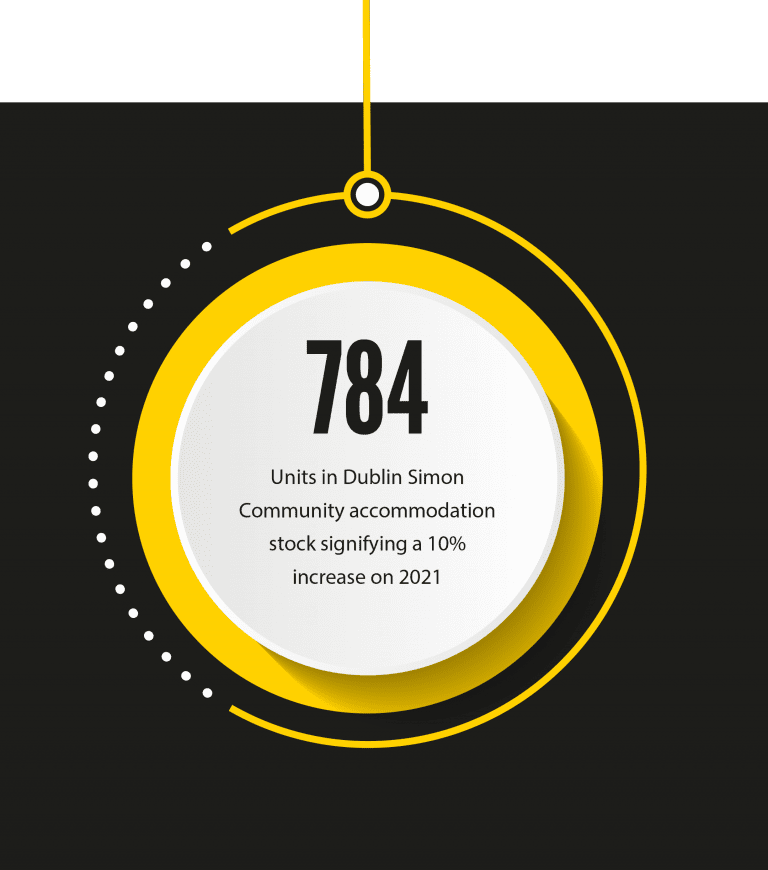 At Dublin Simon Community, our vision is to make home a reality. One of the essential ways we do this is by providing secure, accessible and sustainable homes for individuals and families that are suited to their needs. In 2022, 1,011 people were living in long-term accommodation with us, an 18% increase on 2021.